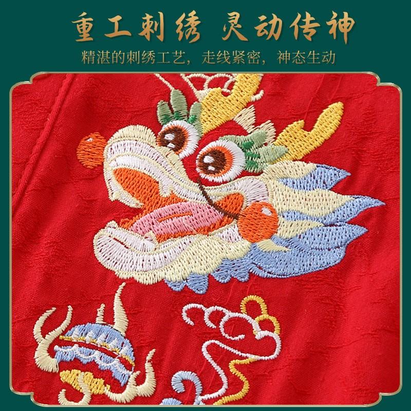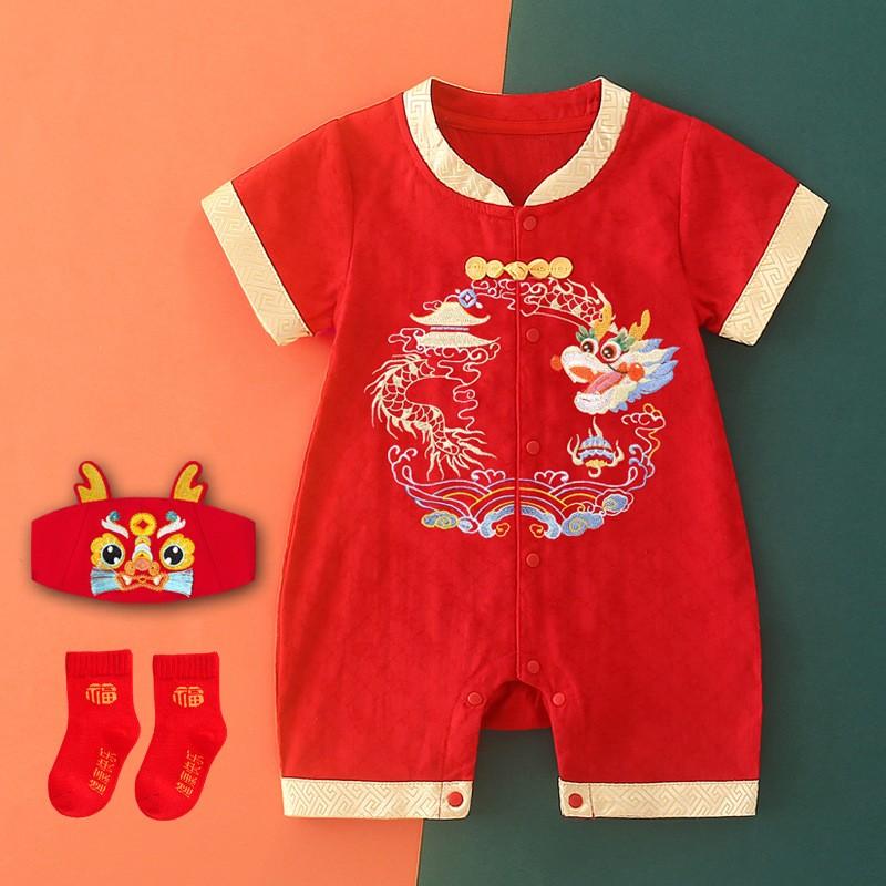 百天连体衣夏季唐装男童婴儿满月服短袖抓周服国风礼服