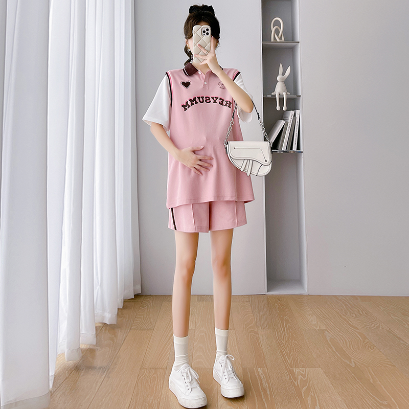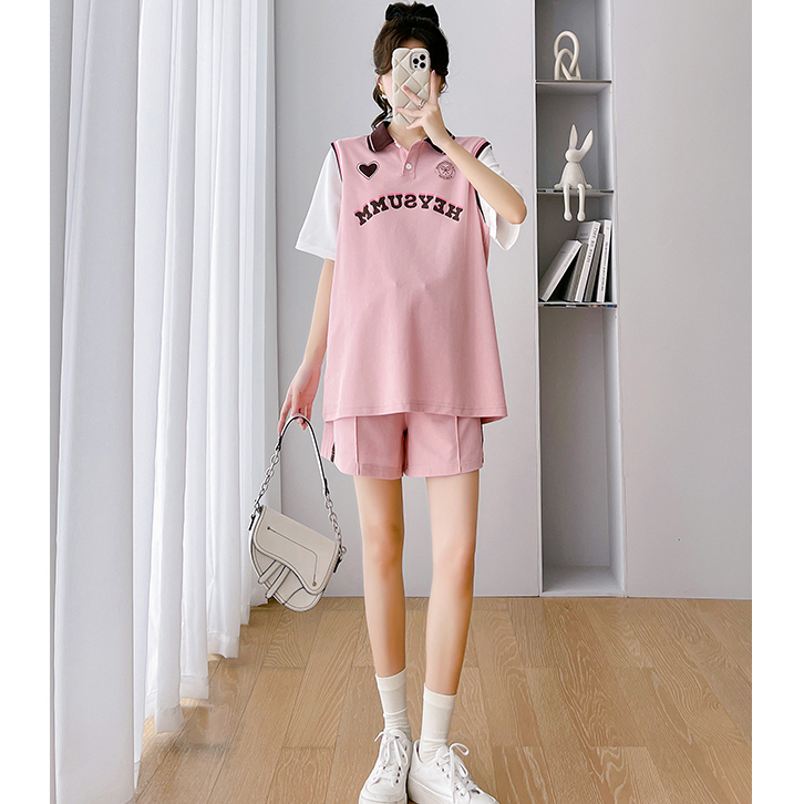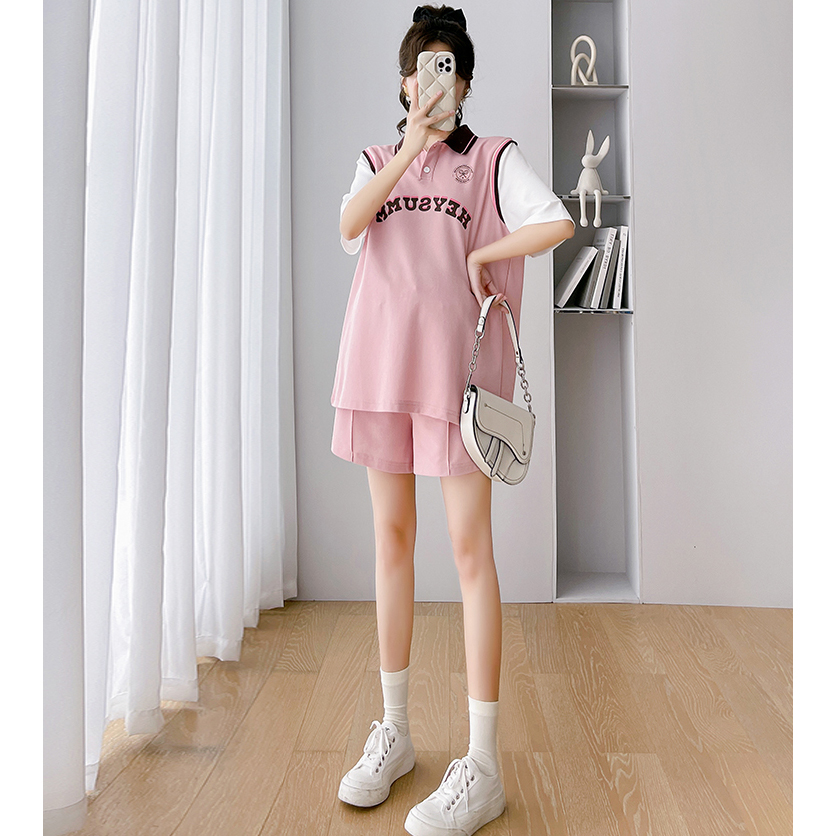 孕妇套装时尚洋气时髦Polo领短袖薄款上衣短裤两件套2025新款夏季