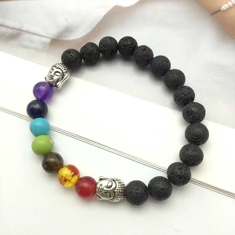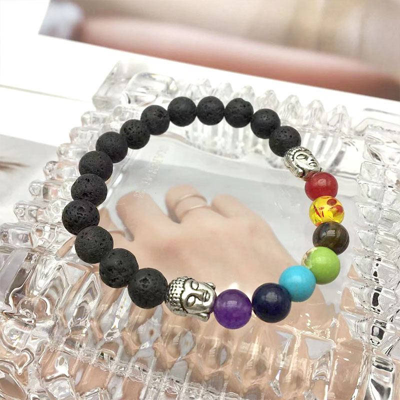 时尚七彩火山石手链男跨境电商热销佛祖合金手串批发