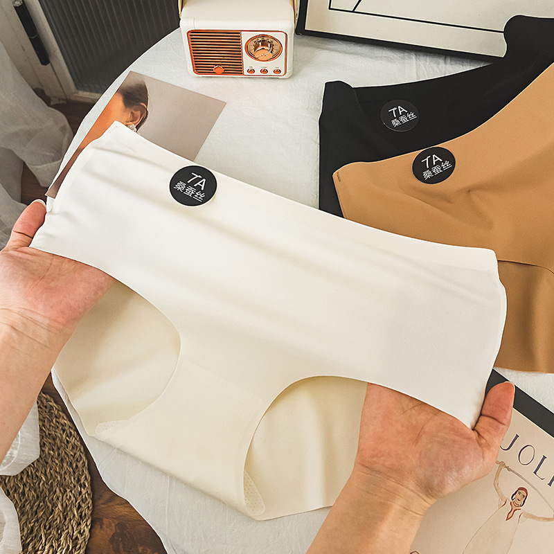 冰丝内裤女7桑蚕丝底裆舒适透气简约纯色高弹中腰无痕女士三角裤