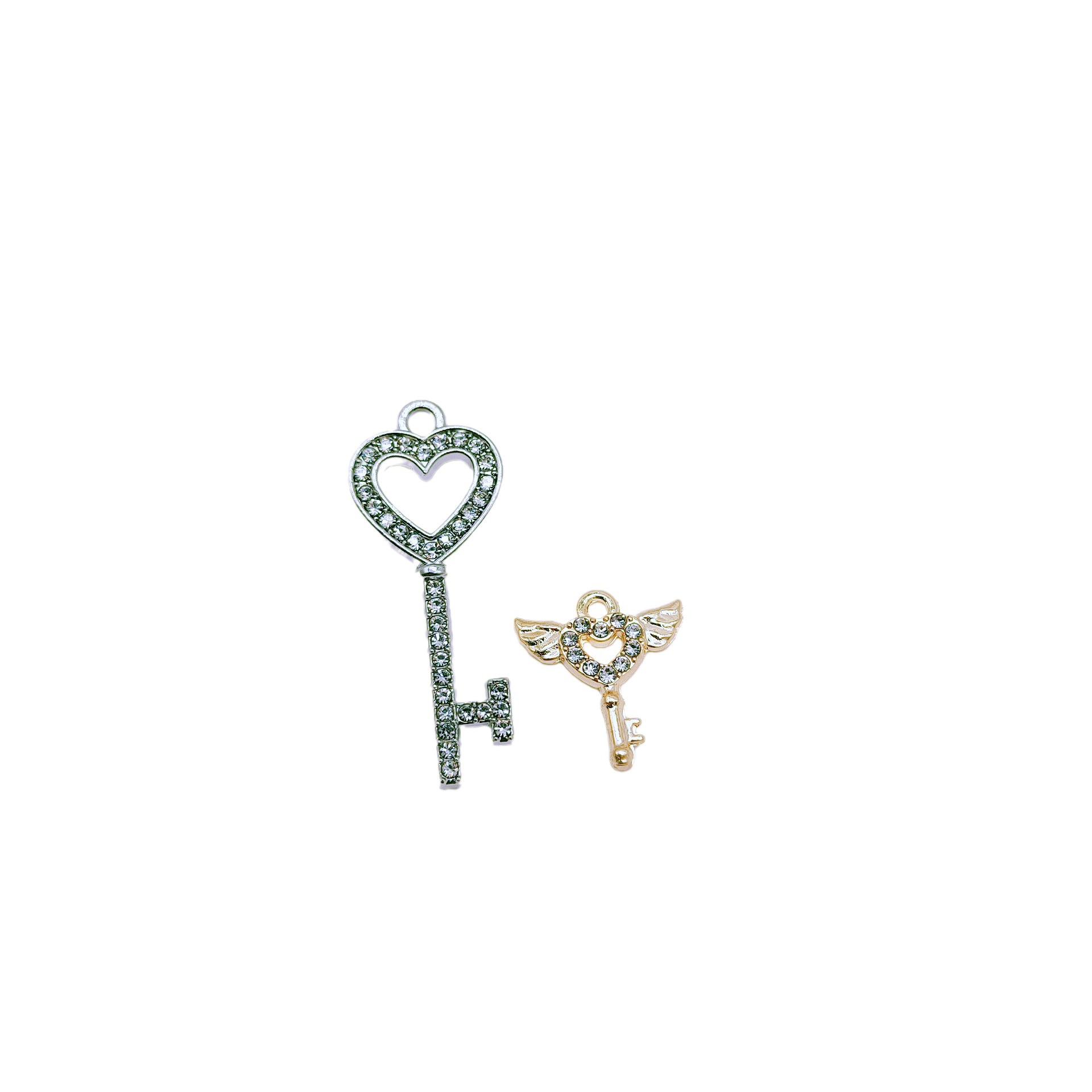 diy饰品钥匙镶钻吊坠爱心配件韩版ins手工项链材料小挂件手链配饰