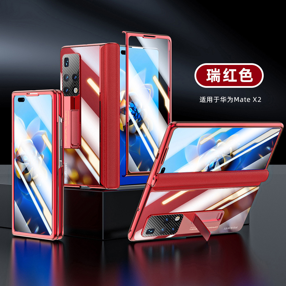 适用华为MateX2手机壳膜一体电镀透明中轴全包铰链保护支架壳套