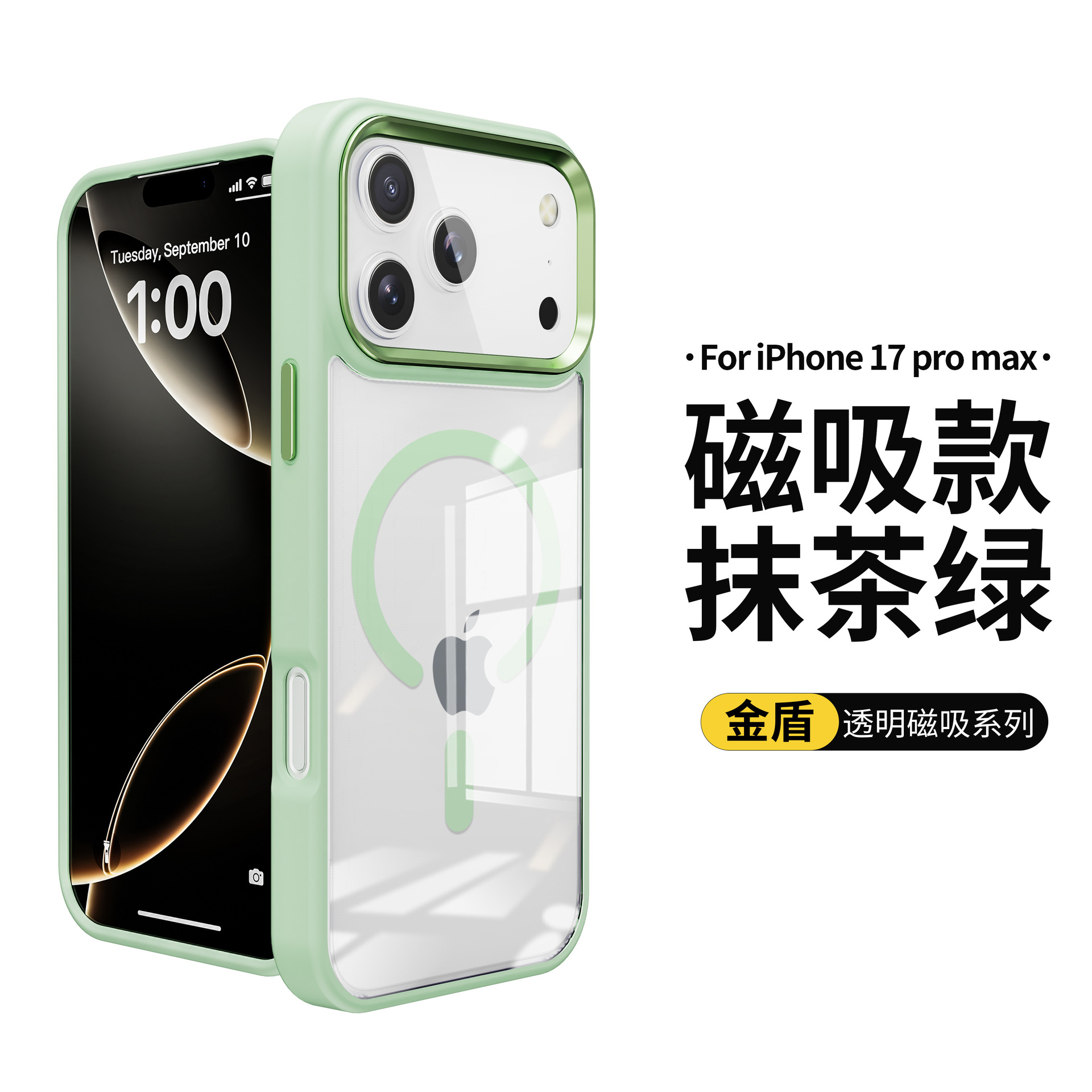 适用于iphone17磁吸手机壳金属按键苹果17promax透明亚克力防摔壳