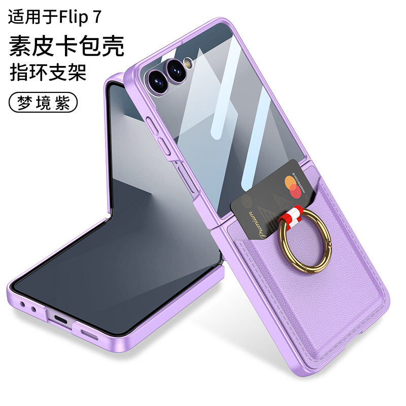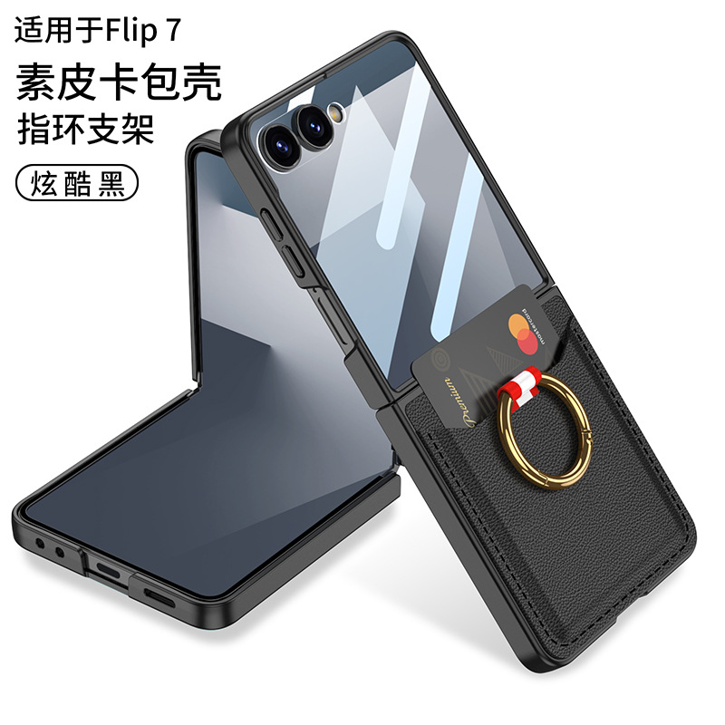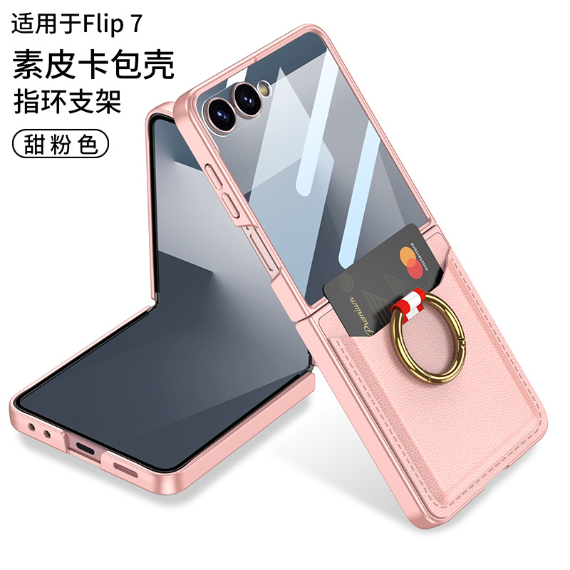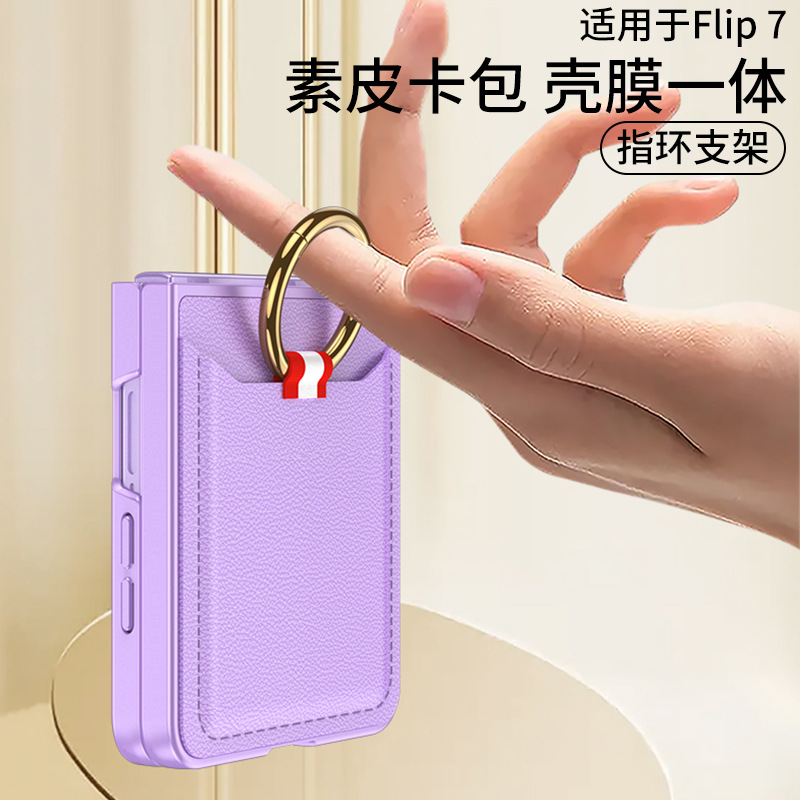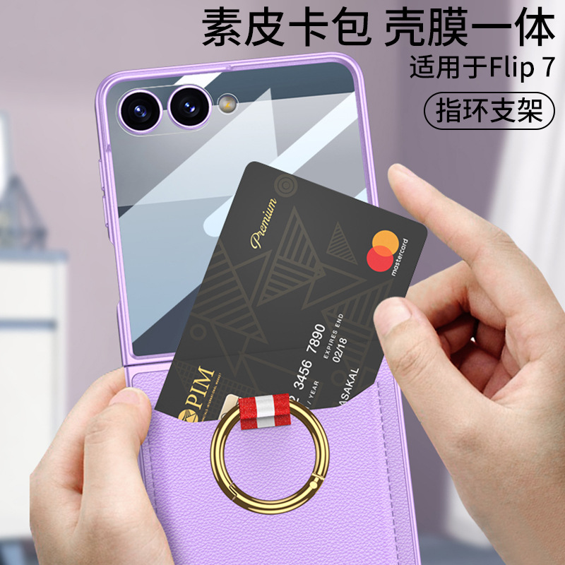 适用三星ZFlip7手机壳超薄卡包指环壳膜一体全包素皮防摔保护套