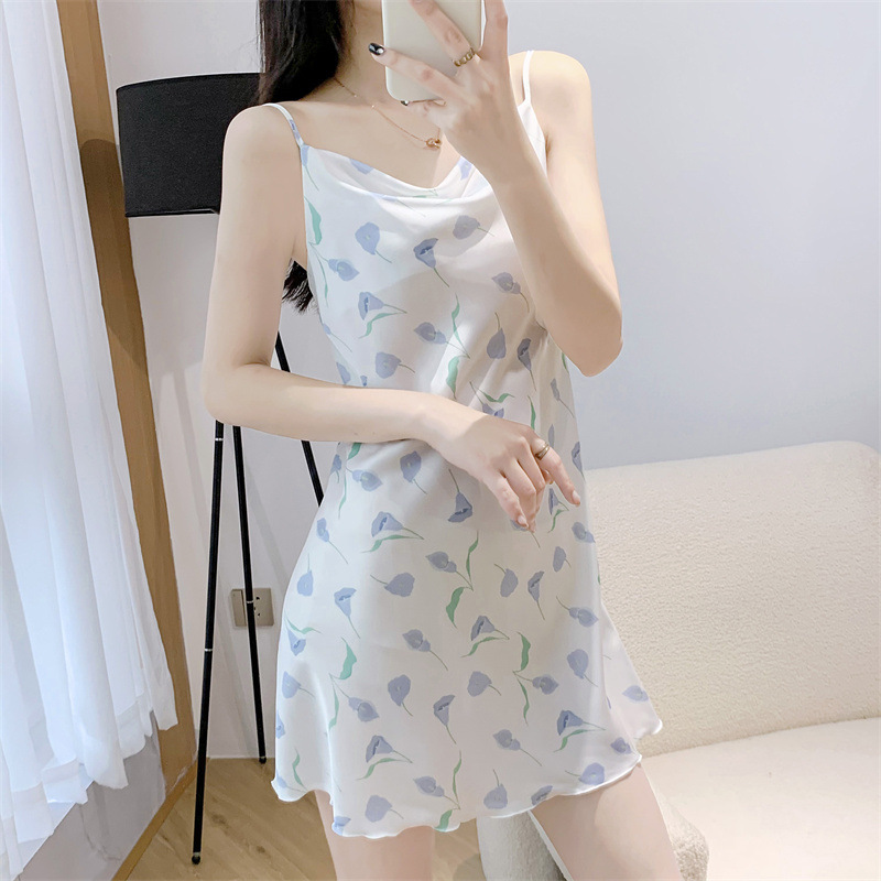 性感女睡衣高级感冰丝夏季纯欲风小碎花吊带睡裙