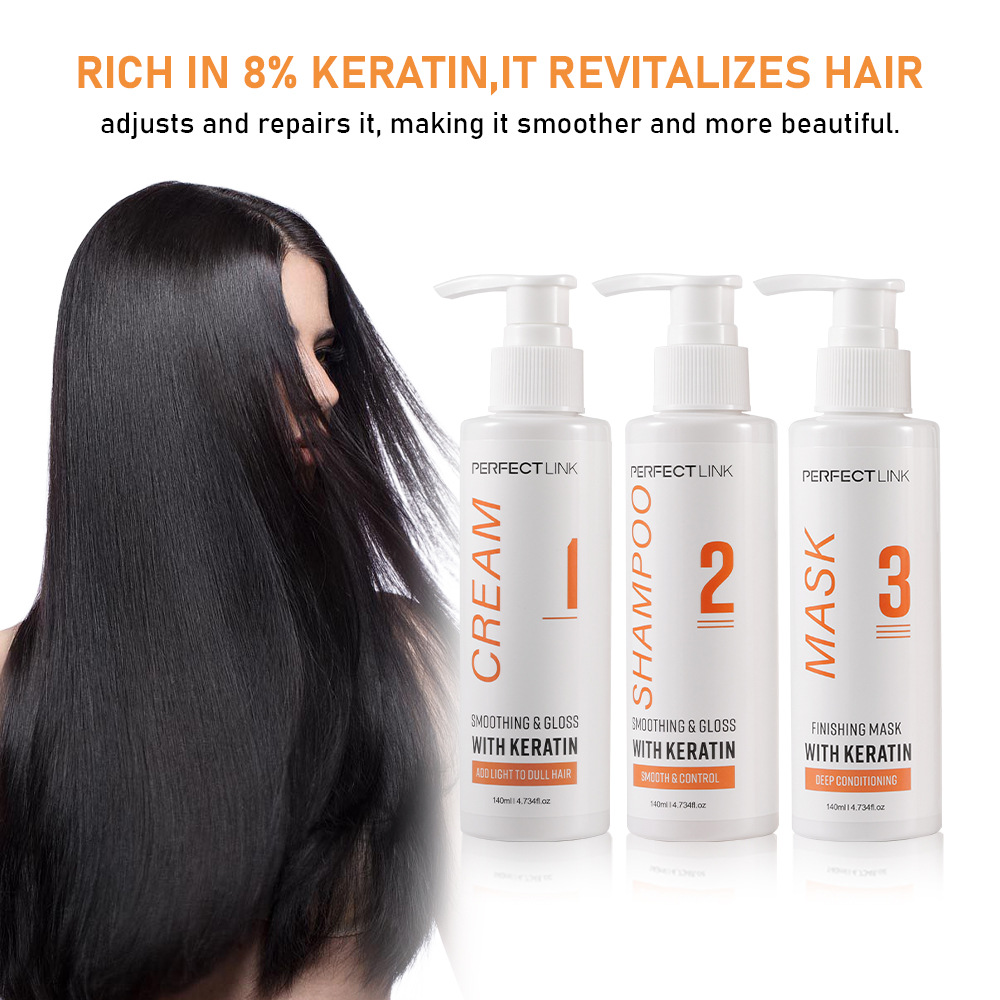 跨境外贸角蛋白家用直发洗发水发膜直发膏不伤发一梳直套装现货