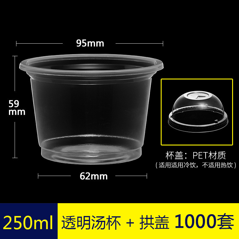 新天力一次性圆形透明带盖甜品沙拉PP塑料打包碗双皮奶布丁杯箱装