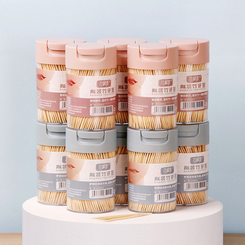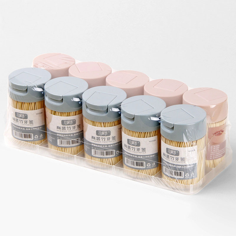 创意筒带牙签饭店家用牙签盒酒店餐厅透明竹牙签瓶牙签筒400支装