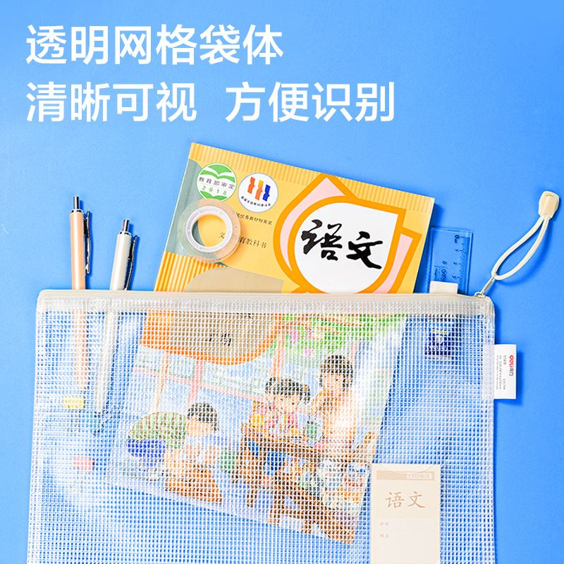 得力63479B透明拉链袋防水办公资料袋加厚文件袋A4学生试卷收纳袋