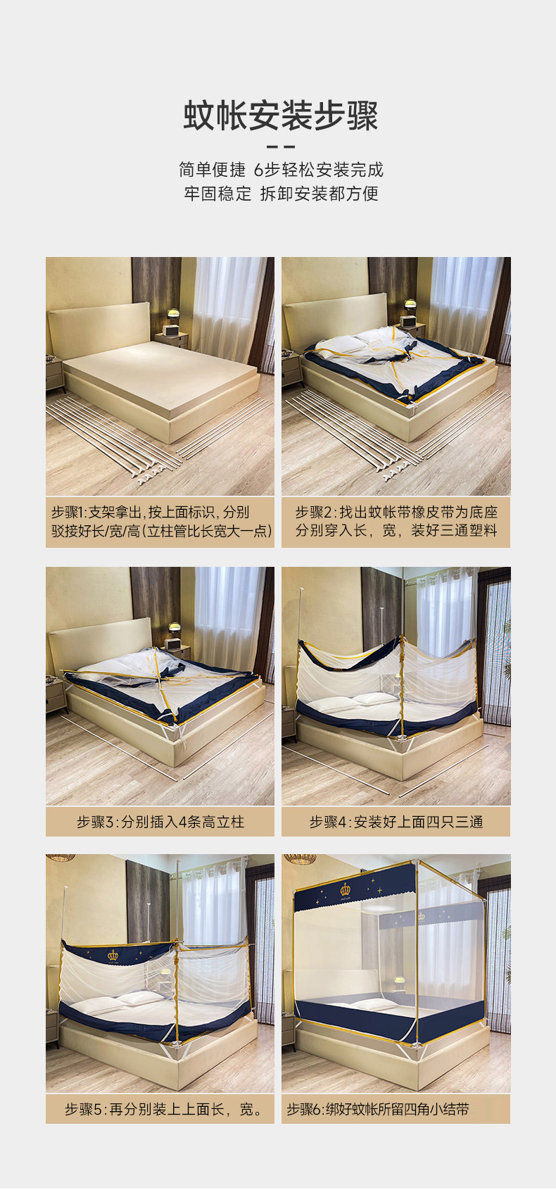 新款拉链折叠蚊帐家用卧室支架固定方便拆洗宝宝防摔儿童加密