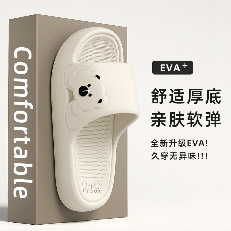 可爱小熊拖鞋女居家浴室酒店洗澡轻便舒适踩屎感厚底外穿凉托鞋男