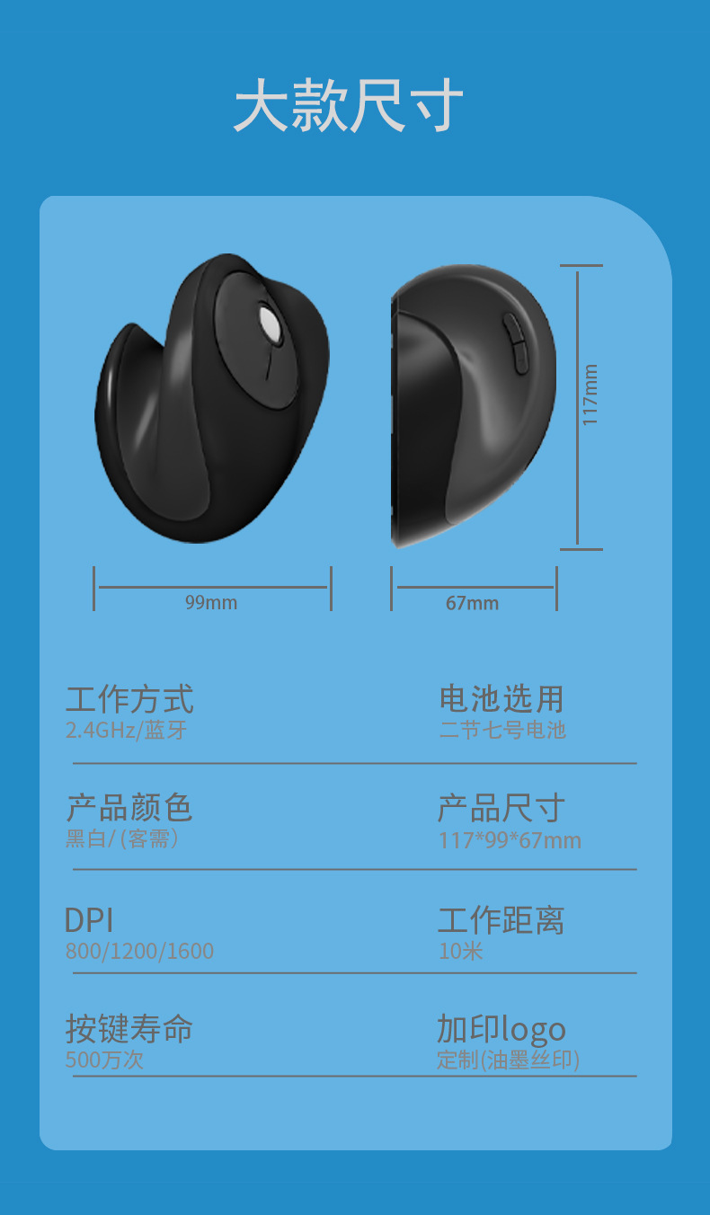 891双模无线垂直鼠标蓝色