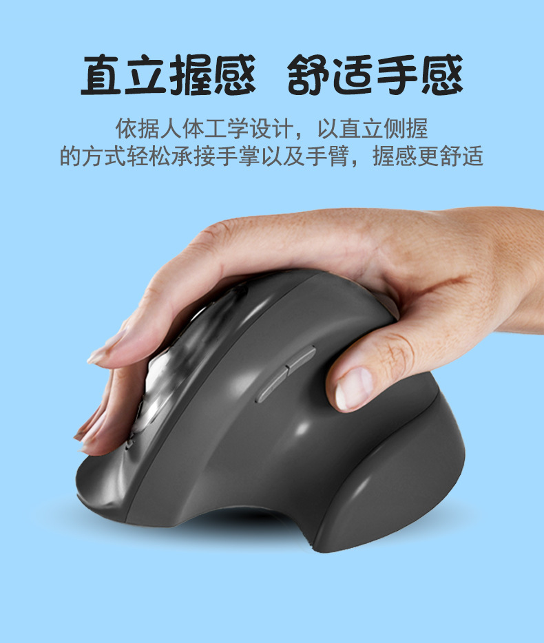 人体工学垂直鼠标双模无线办公鼠标手握立式充电静音键鼠私模