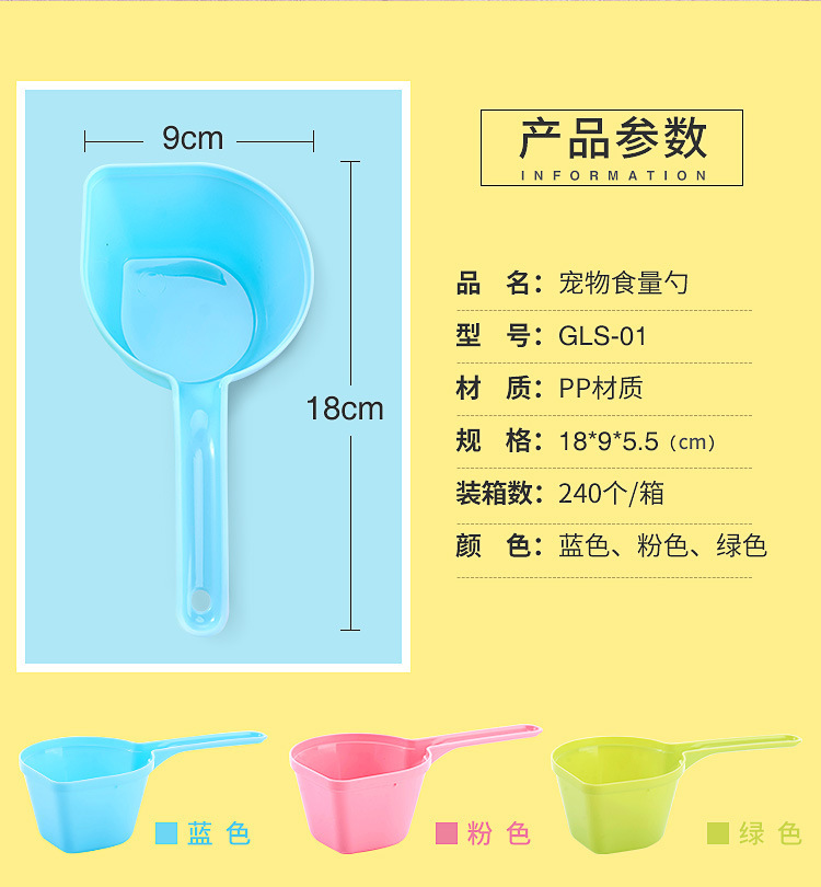 水舀形狗粮勺 优质全新塑料彩色宠物食品铲猫粮狗粮铲