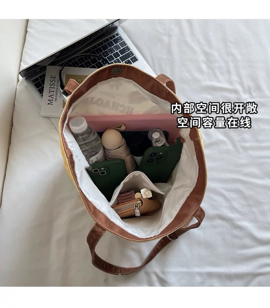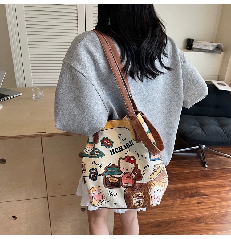 可爱卡通猫帆布包包女2025新款大容量单肩水桶包上课托特包