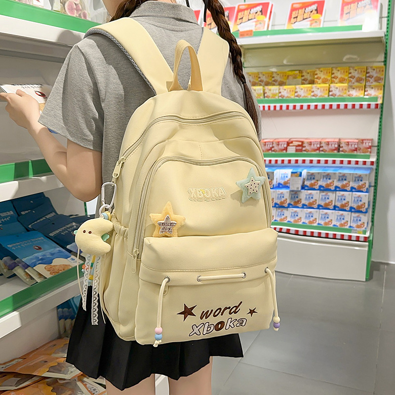 高颜值双肩包新款大小号马卡龙色女孩校园书包字母印花旅行包