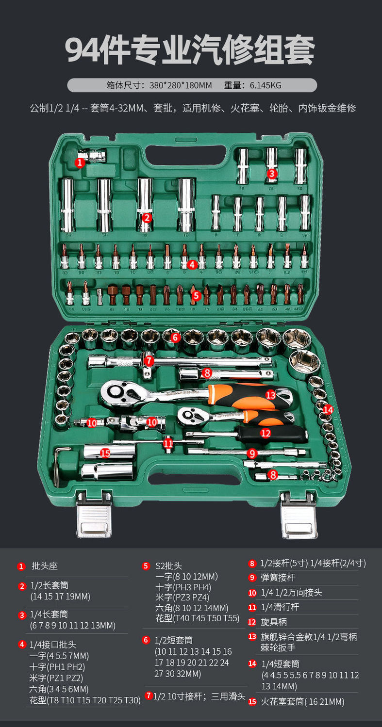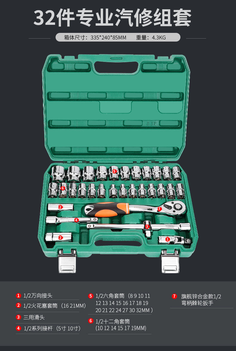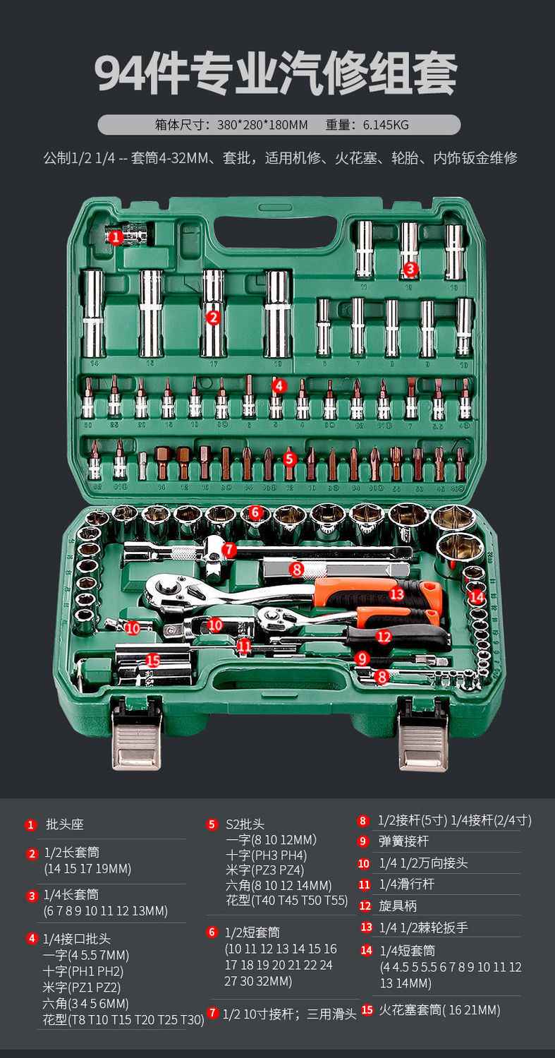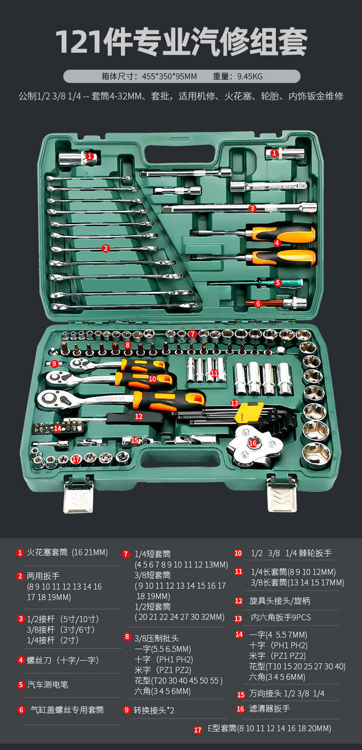 棘轮扳手工具套装万能修车汽车维修汽修箱快速套管套筒组合
