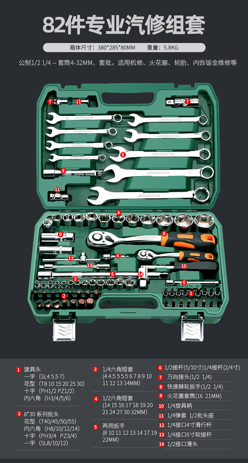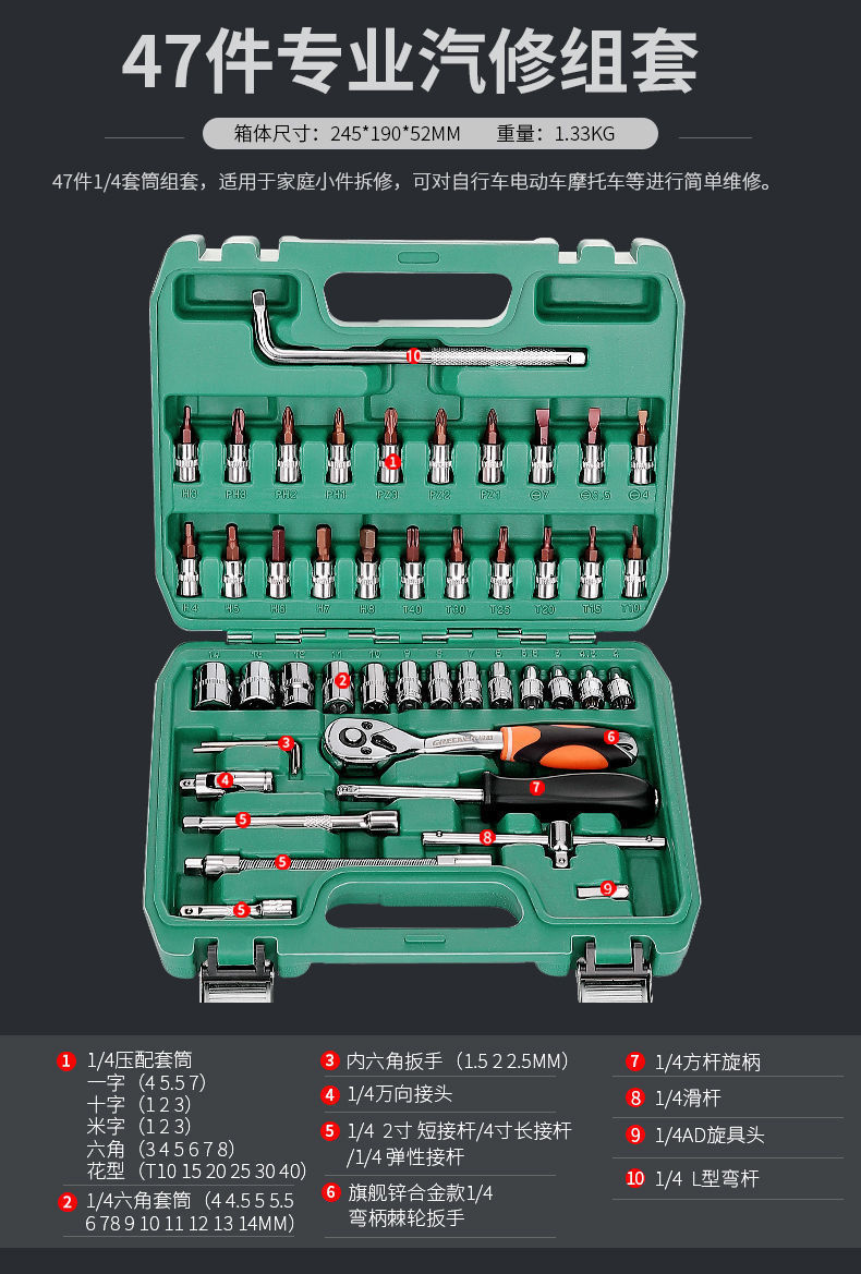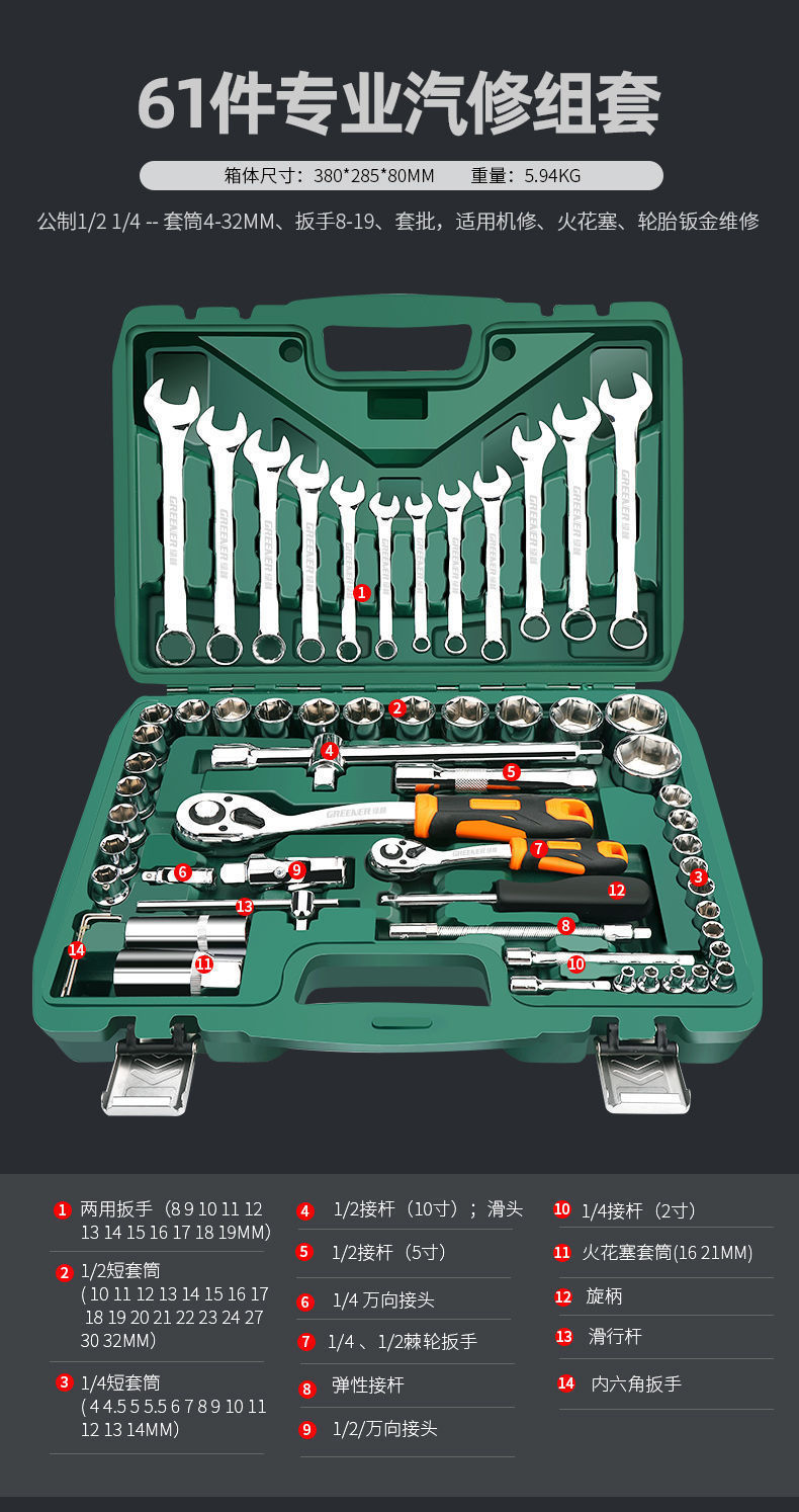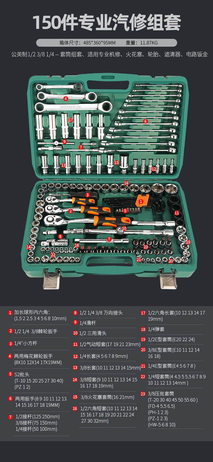 棘轮扳手工具套装万能修车汽车维修汽修箱快速套管套筒组合