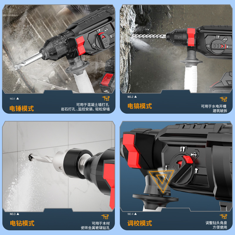 无刷锂电电锤工地用锂电冲击钻两用电镐电钻三用电锤