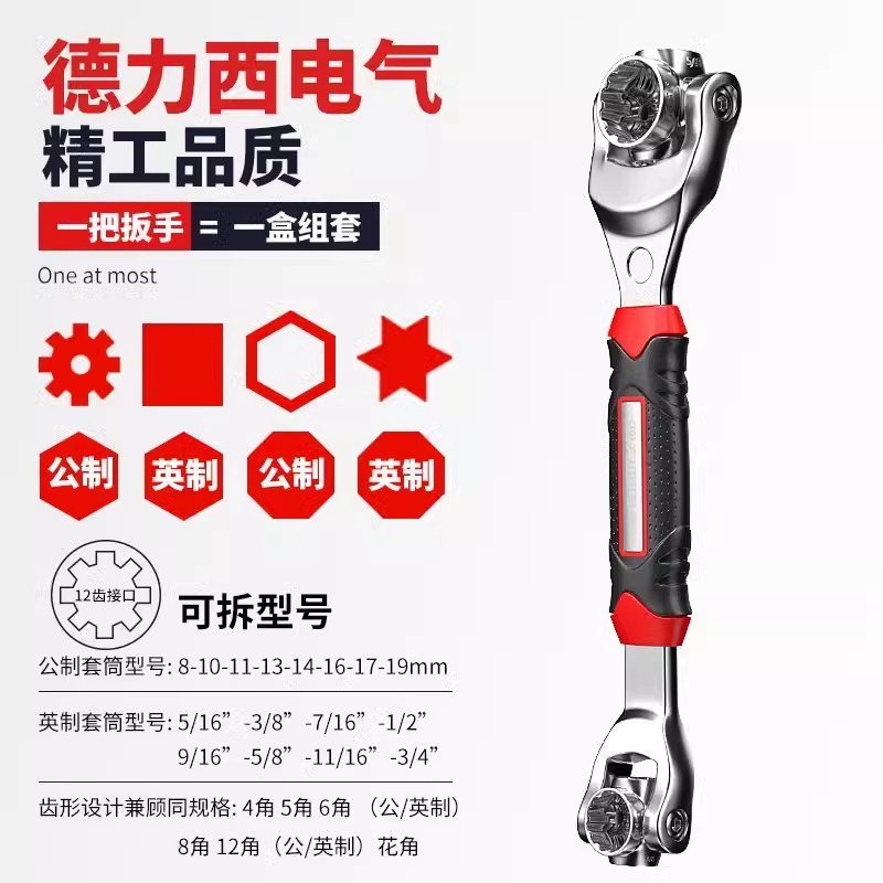 电气套筒扳手8-19-22六角梅花52合一家用工具万能活动扳手