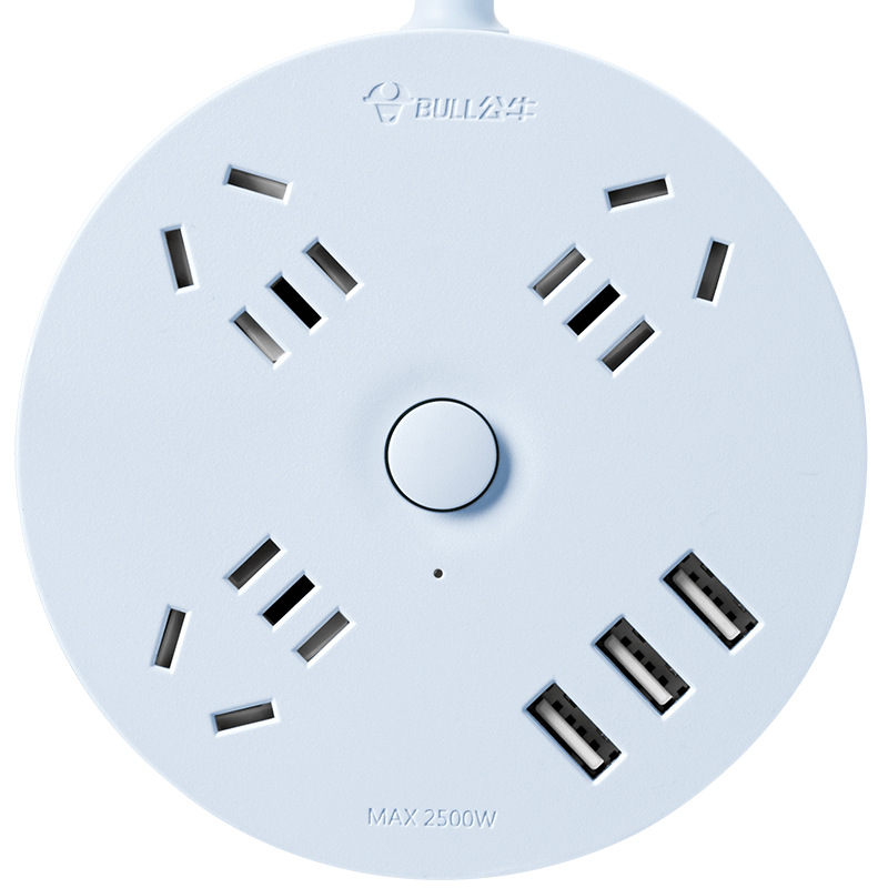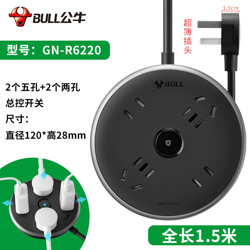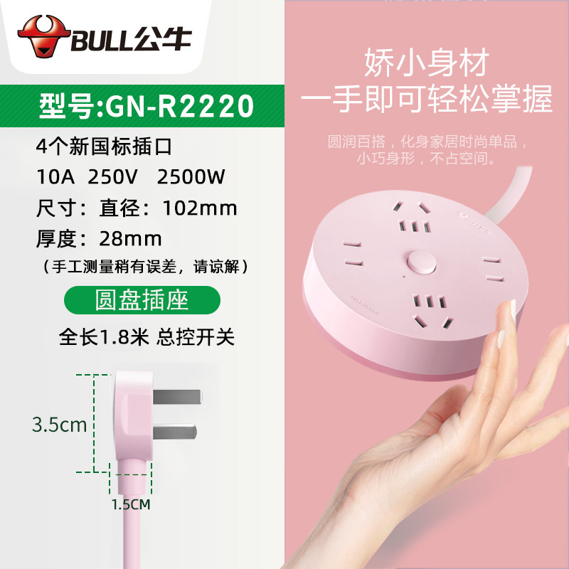 公牛多功能插盘带线插排接线板多孔位爬墙圆盘插座插板圆形