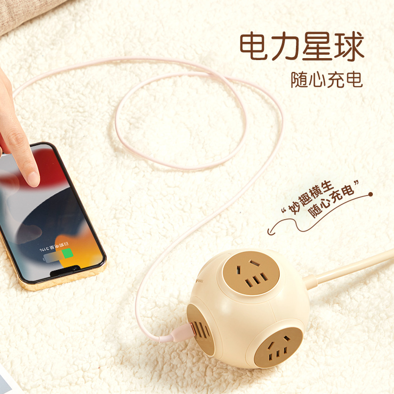 公牛星球插座快充球形接线板插排多插位五孔多功能转换器