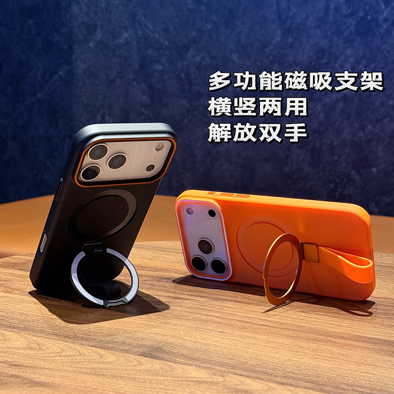 适用iPhone17手机壳亲肤支架带手绳苹果16ProMax防摔保护套磨砂