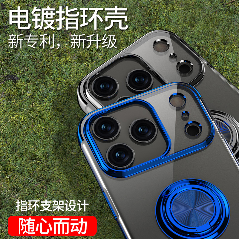 适用iPhone17手机壳电镀透明指环苹果16ProMax车载支架保护套