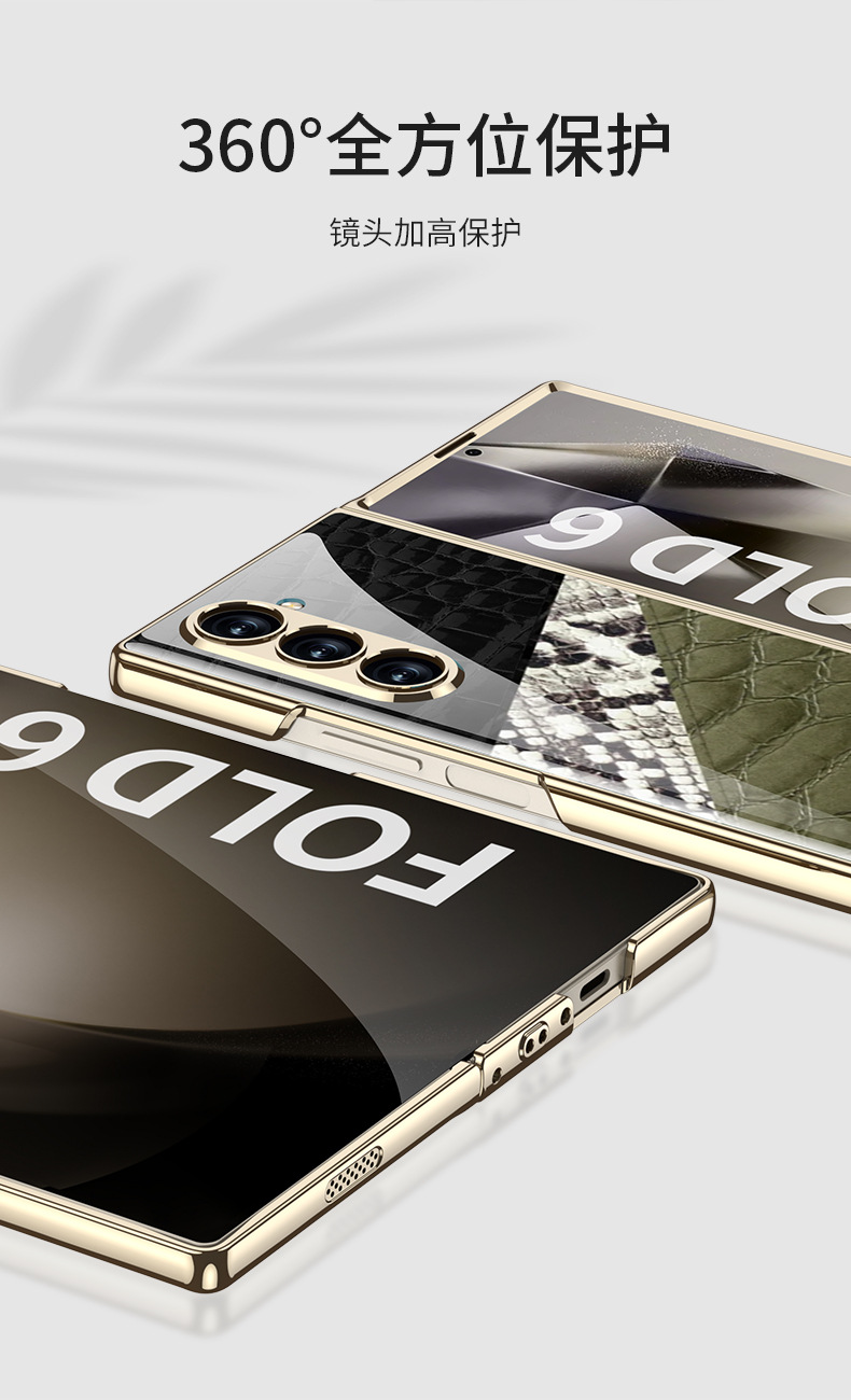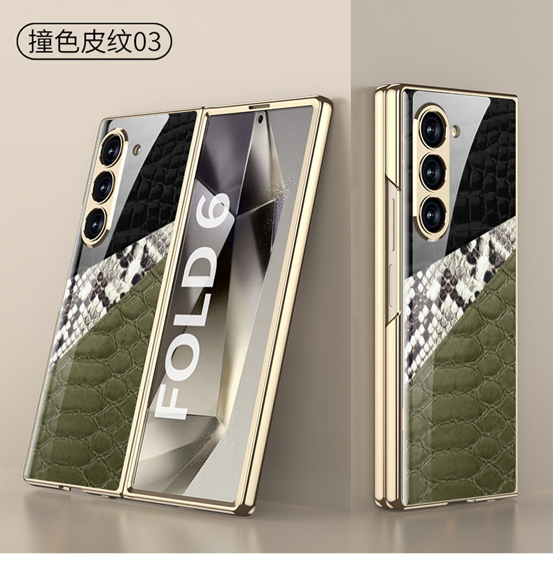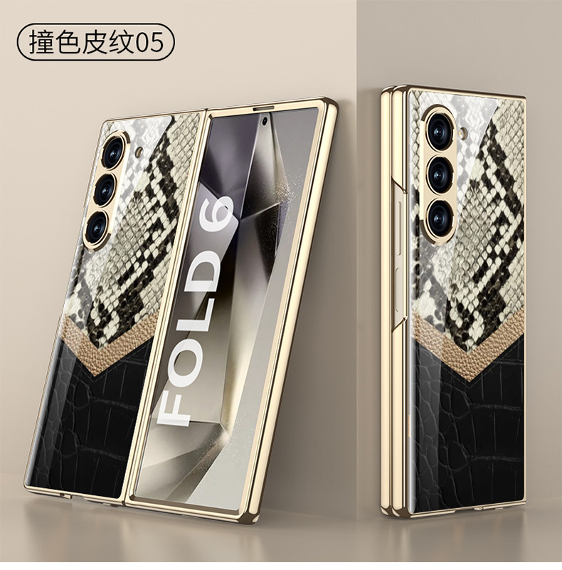 适用三星zfold6手机壳撞色皮纹电镀玻璃保护套fold6彩绘时尚潮牌