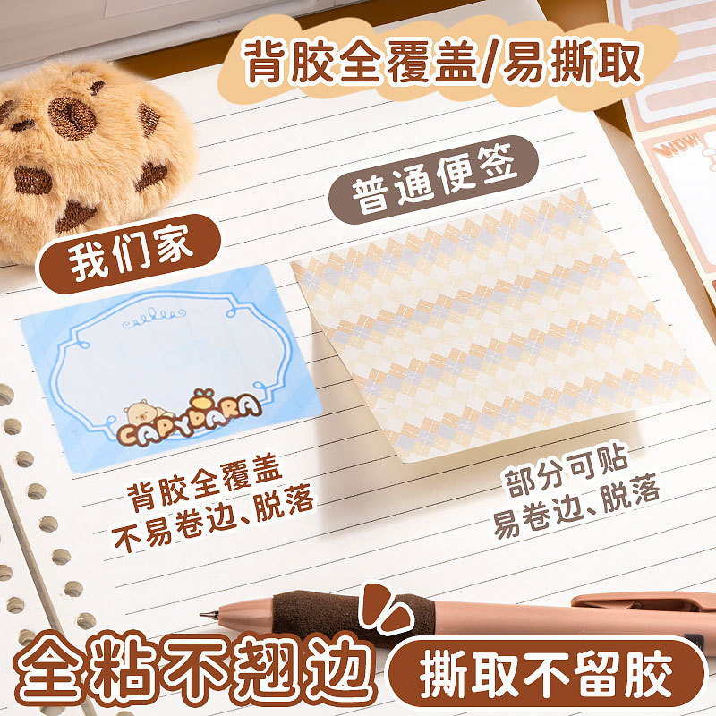 卡通创意抽拉式便签贴学生手账贴纸便利贴桌面留言全贴N次便签本