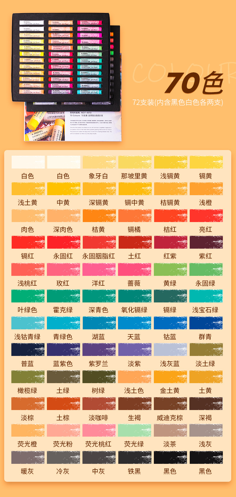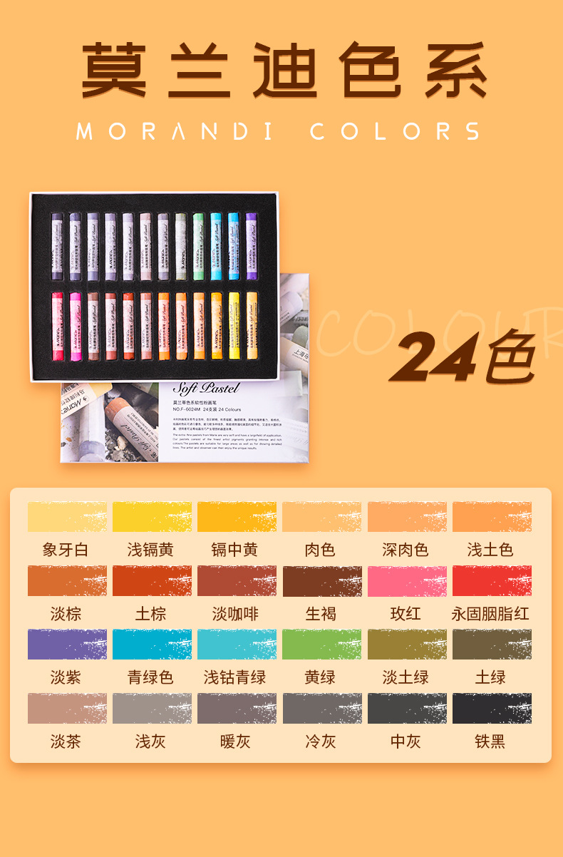- 24色莫兰蒂系列软性色粉棒【F-6024M】(36盒/每箱)