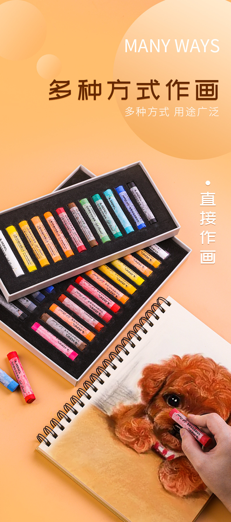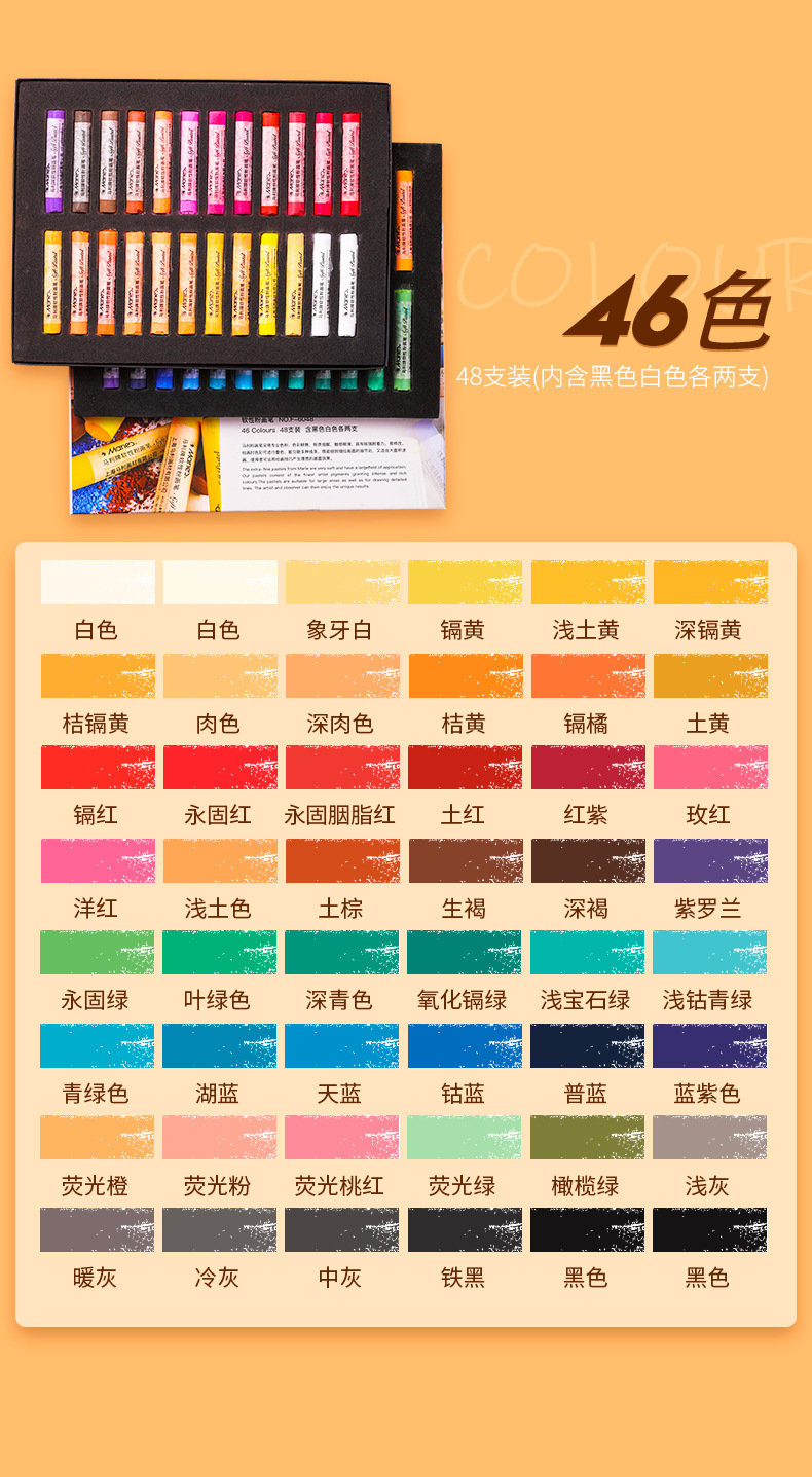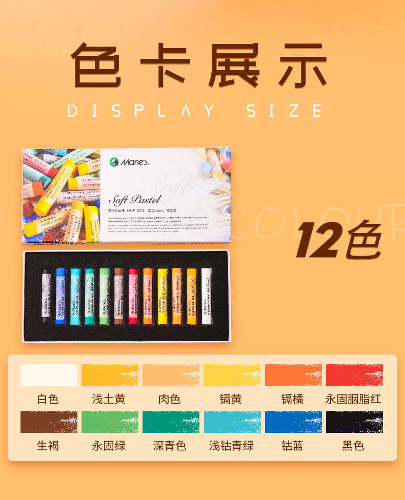 马利色粉笔12色24色36色48色粉彩棒染发棒炫彩棒画画颜料蜡笔套装