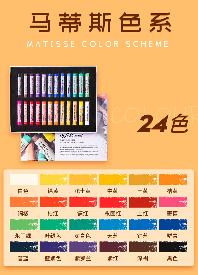 - 24色马蒂斯系列软性色粉棒【F-6024H】(36盒/每箱)