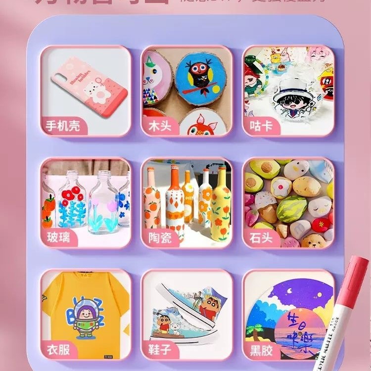卡通丙烯马克笔小学生美术专用水彩笔不透色可叠色儿童无毒可水洗