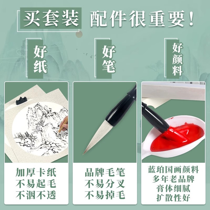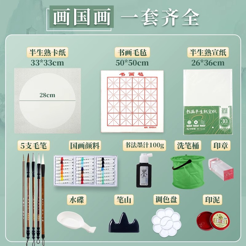 老师推荐12色国画颜料初学者套装宣卡纸绘画全套工具材料中国画