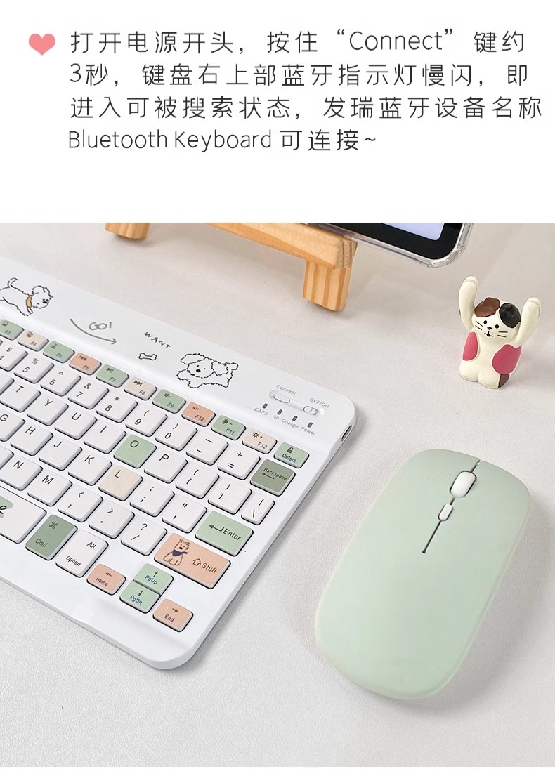 10寸单蓝牙键盘+绿色鼠标★【毛边狗A225方形键盘】