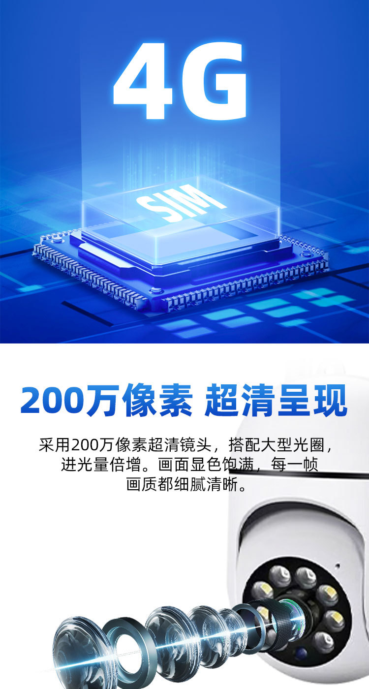 三目摄像机无线监控摄像头家用高清夜视家庭监控器户外球机