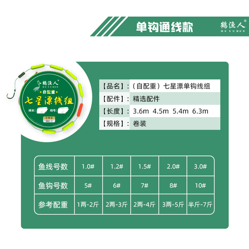 七星漂免调漂钓鱼线组成品主线组子线单双钩渔具尼龙三信浮漂铅坠