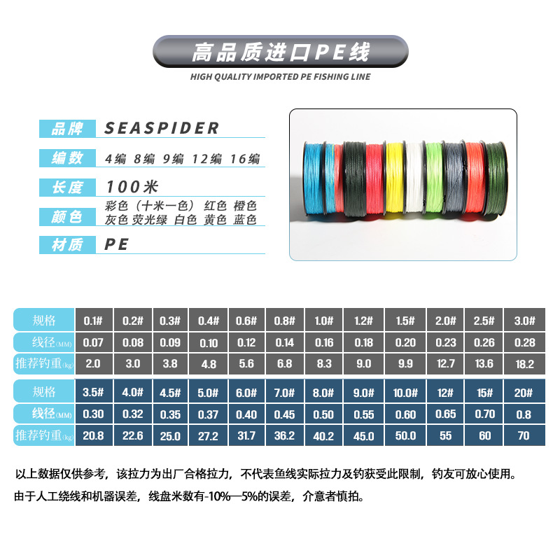 鱼线主线路亚pe线100米编织线8编大力马远投渔线超强拉力渔具