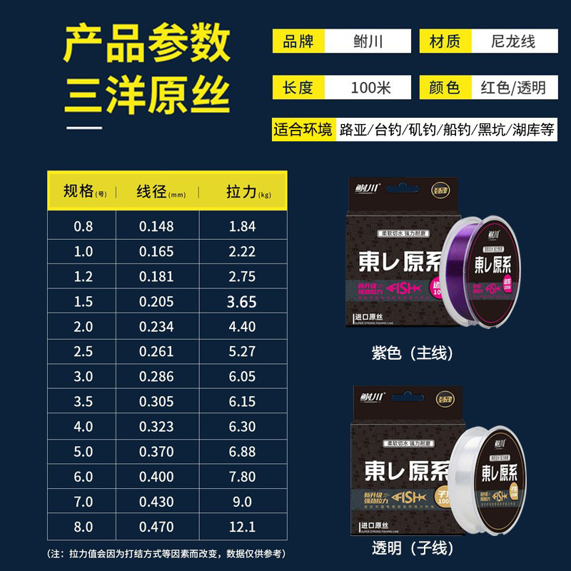 100米东丽原系魚线主线子线鱼线渔具高端原丝不打卷尼龙线钓鱼线