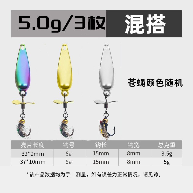- 螺旋桨苍蝇饵小号【10枚】3.5g炫彩+跳跳鱼7g*5枚装送双面收纳盒