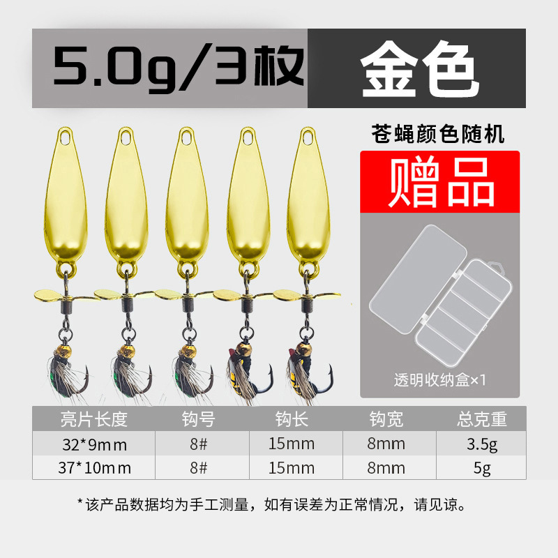 - 螺旋桨苍蝇饵大号【10枚】3.5g金色+跳跳鱼7g*5枚装送双面收纳盒