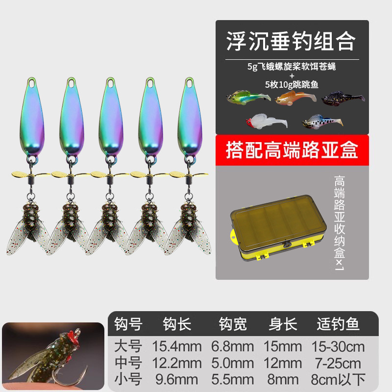 - 螺旋桨苍蝇饵中号【10枚】5g混搭+跳跳鱼10g*5枚装送双面收纳盒