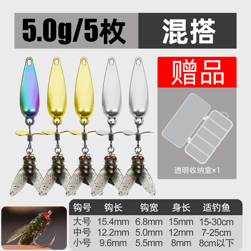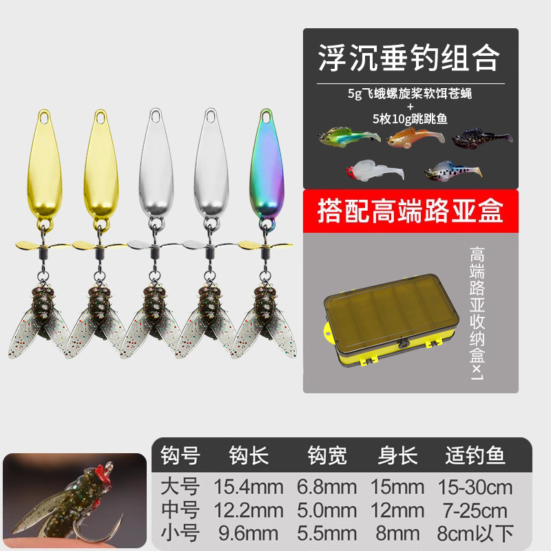 - 螺旋桨苍蝇饵小号【10枚】5g混搭+跳跳鱼10g*5枚装送双面收纳盒