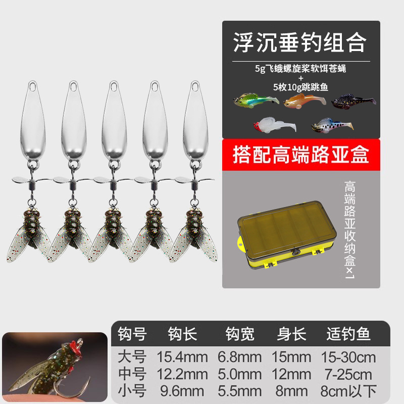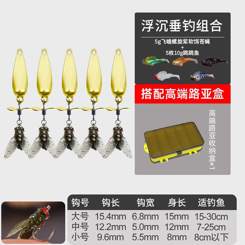 - 螺旋桨苍蝇饵大号【10枚】5g混搭+跳跳鱼10g*5枚装送双面收纳盒