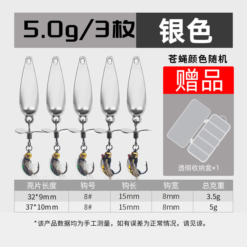 - 螺旋桨苍蝇饵小号【10枚】3.5g银色+跳跳鱼7g*5枚装送双面收纳盒