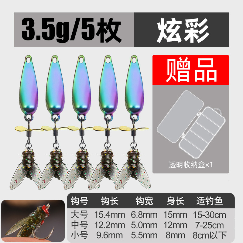 - 螺旋桨苍蝇饵小号【5枚】3.5g炫彩送路亚饵收纳盒