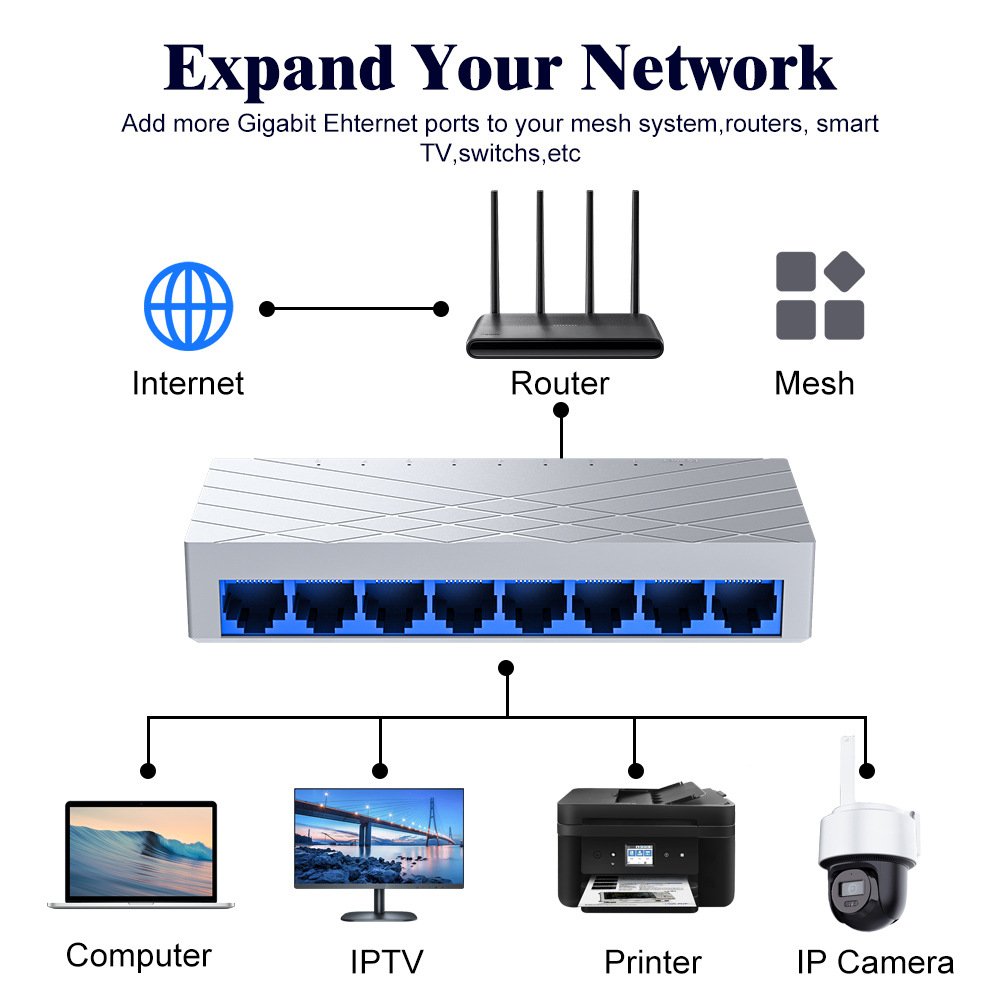 千兆交换机8口网络交换机分线器监控公司宿舍学校