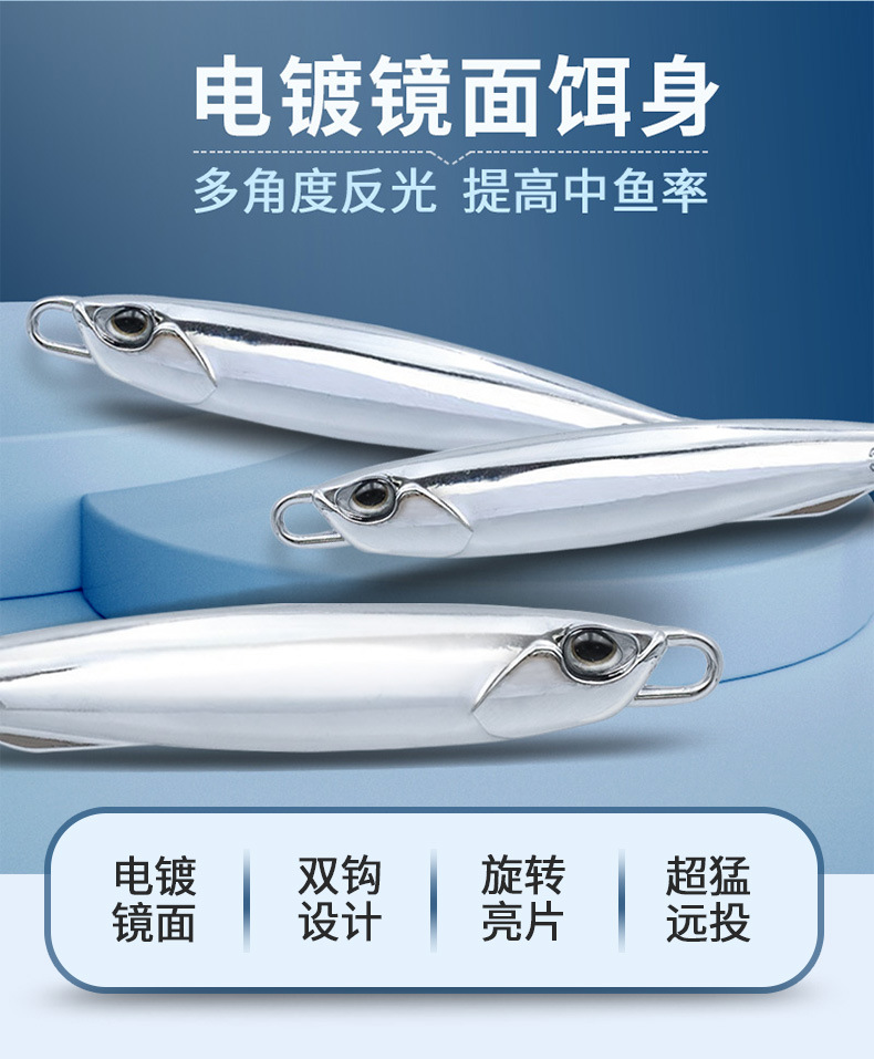 远投双钩电镀镜面银铁板路亚饵套装鲅鱼翘嘴鲈鱼淡水海钓亮片假饵