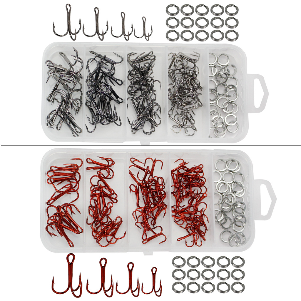 猎高路亚三本钩套装高碳钢鱼钩带倒刺盒装双圈垂钓渔具配件